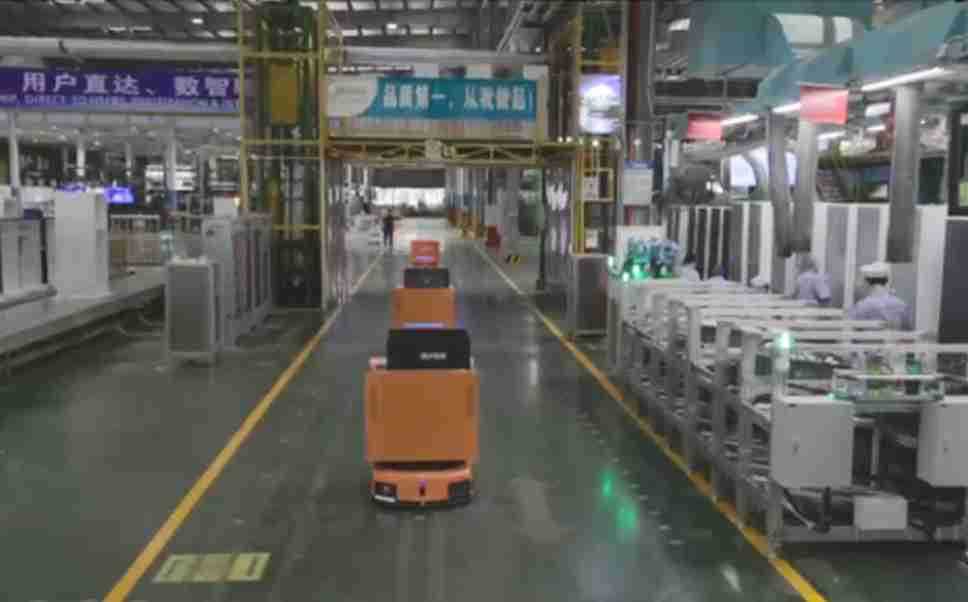 为车载冰箱物流配送打造的智能解决方案,,包含产中物流通过潜伏举升AMR搬运至线边,,,,产后成品物流智能仓储,,,流程包含产中物流智能齐套入库,,,线边安灯叫料AMR智能配送至线边,,,成品入库、、、、出库,,通过无人堆高车机器人,,,智能仓储管理替代人工作业管理,,,实现更高存储、、更高效率、、、、更具柔性化的解决方案。。
